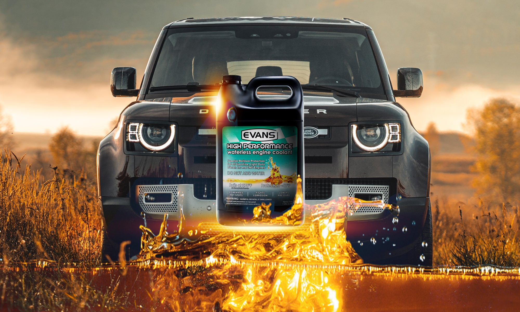 Evans High Performance Waterless Coolant is designed for all gasoline and light duty diesel engines. Evans coolant eliminates many problems associated with water in conventional water-based cooling systems, while increasing reliability and engine life. You love your vehicle—it deserves Evans. The wilderness is no place for overheating. Keep your off-roading on track with Evans